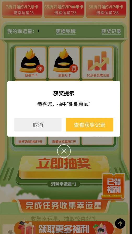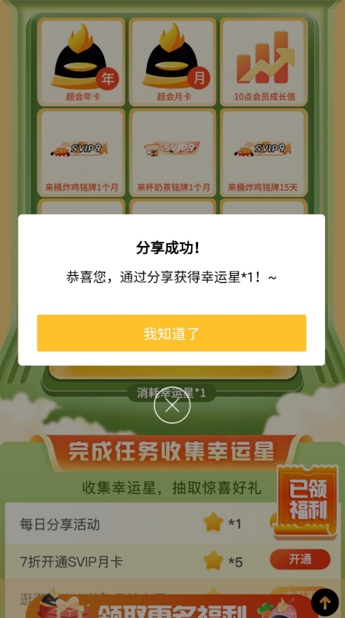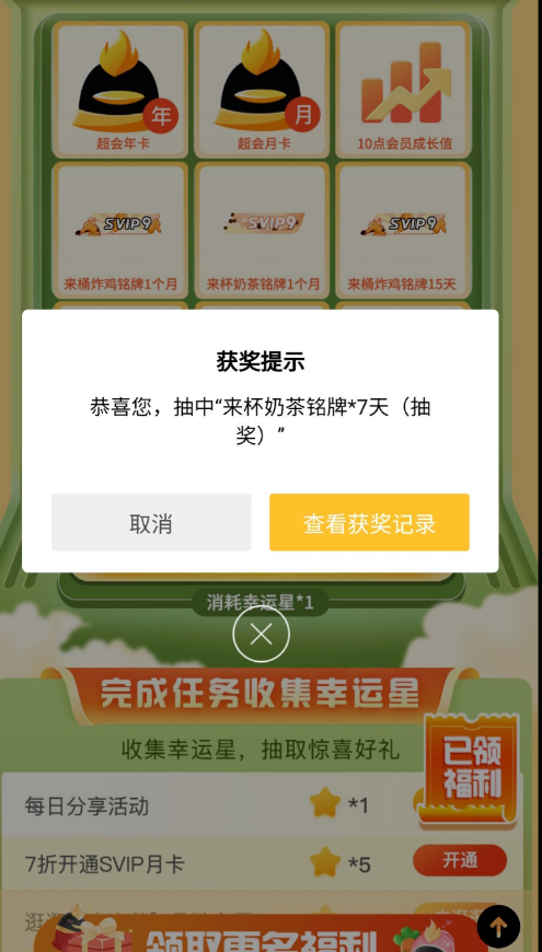 扣扣7天超会铭牌,页面下滑4次机会,还是挺好看的[滑稽]
