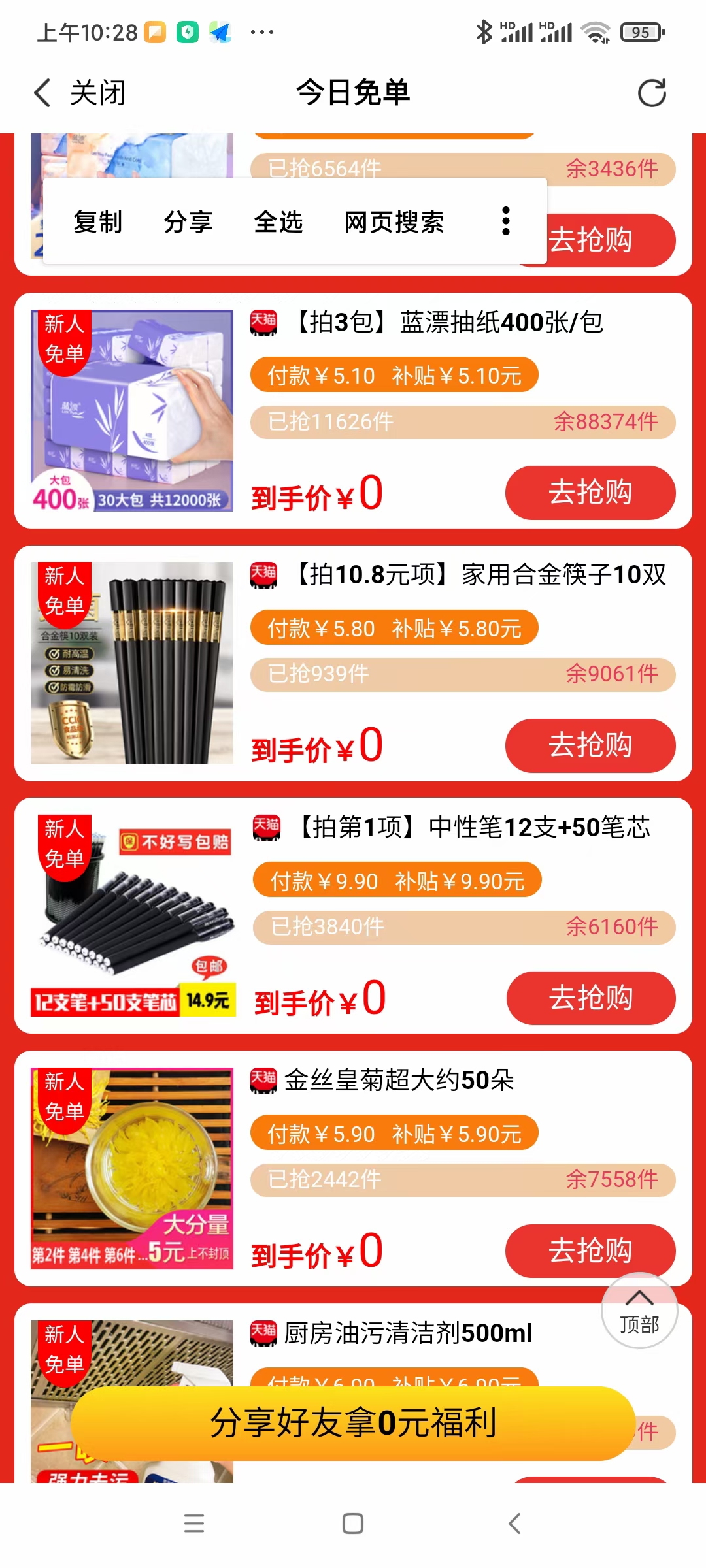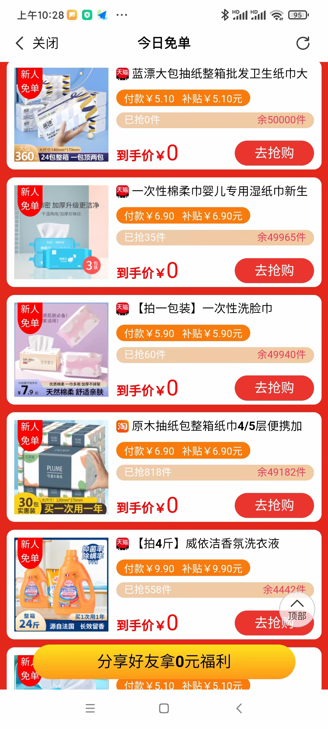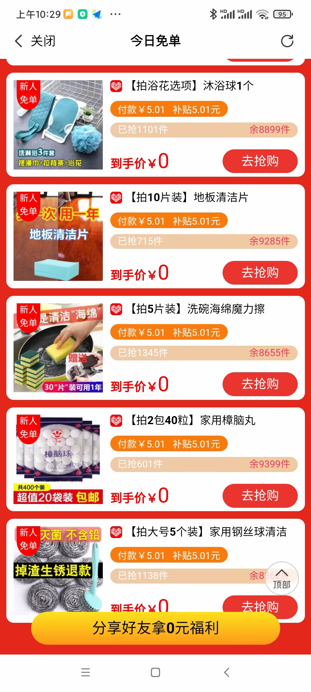 0撸各种包邮商品 邀一新人还有4元奖励.