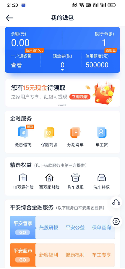 下载汽车之家AP,登陆,我的,我的权益点我的余额,点红字新用户领15元,