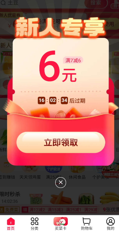进入领取7-6优惠券(新号才有)完成15天内的订单可注销后领取