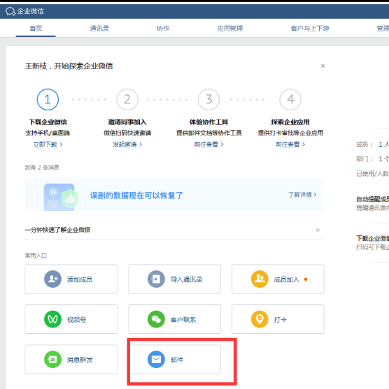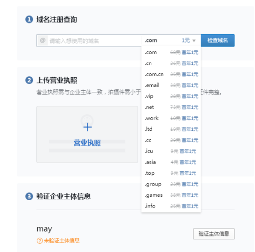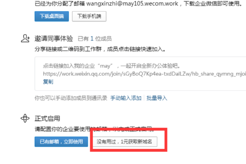 当然浏览器登录企业微信,点击企业邮箱,你会看见一个1元注册域名,然后点击,注册,需要一个营业执照如果自己没有就百度搜索,自己找一个使用然后注册,然后企业微信,,还可以领取一个月腾讯视频会员,加一个域名,会员12月31号就应该结束了,先到先得,也可以自己注册公司,不过为了领取不值得