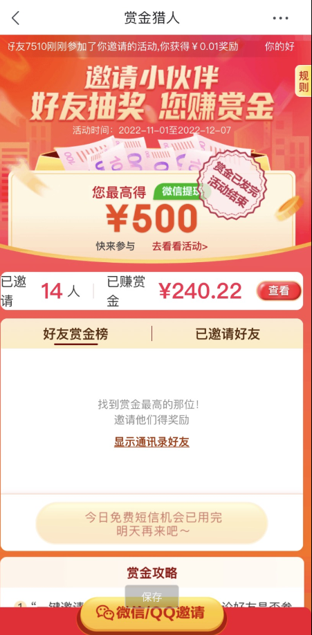 无限秒到20现金   大号先走链接支付0.01出码   然后拉小号