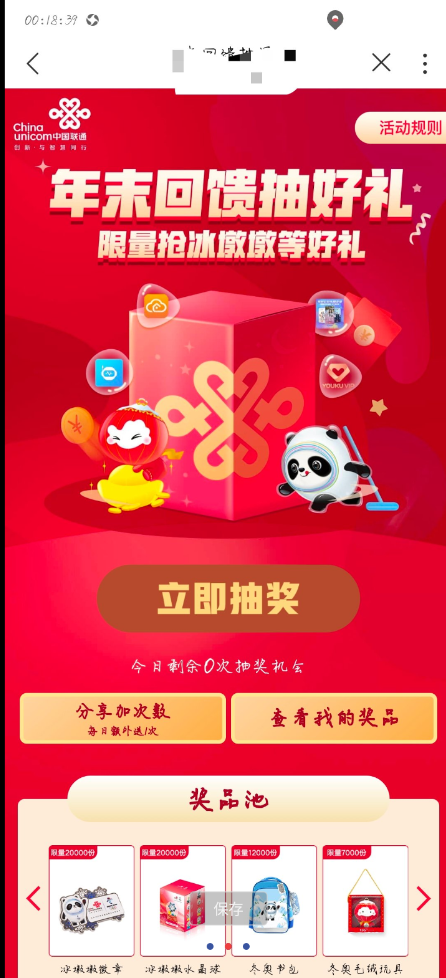 【参与方式】联通APP-下拉横幅 年末回馈抽好礼-立即抽奖