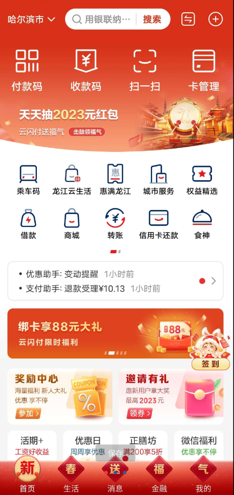 【活动介绍】云闪付送福气抽0.2-2023元红包