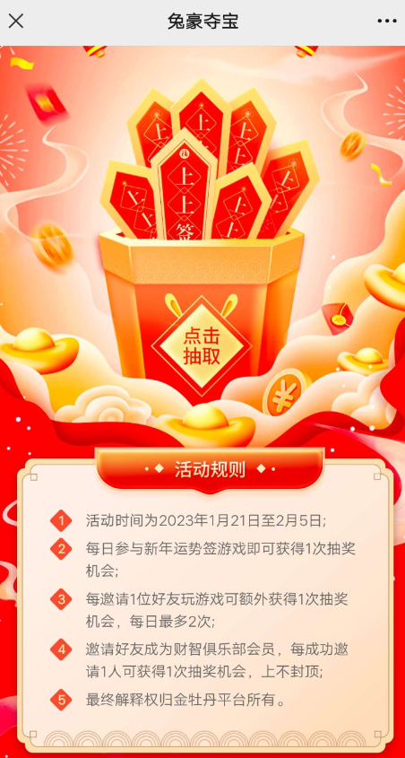 【参与方式】关注金牡丹平台公众号(图一)——点击平台推文100%中奖进去——随便注册一下,抽奖即可——先摇签,在下拉抽奖——目前是必中