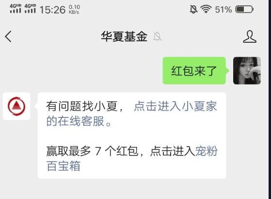 【参与方式】华夏基金公众号-回复红包来了-进去每一个活动都去抽奖试试-只有不是非洲人的号,最低4个包[玫瑰]