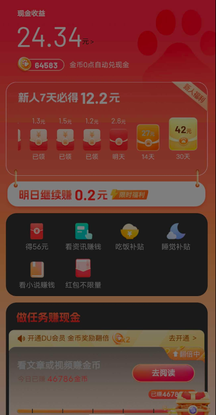 首页 > 活动线报 > 百度极速版新人看视频小说保底60~70元