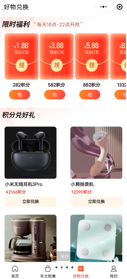 公众号下面的中间,车主好礼,每日签到领积分,