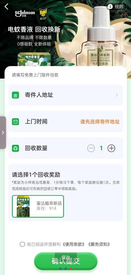 【活动介绍】菜鸟回收空瓶电蚊香0.01元实物