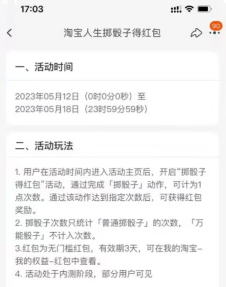 【活动介绍】淘宝人生扔骰子领5元购物红包