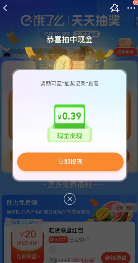 【参与方式】饿了么app-我的-下拉找到助力免费领进去-10秒内随便分享一下- 返回抽即可[玫瑰]运气好1+