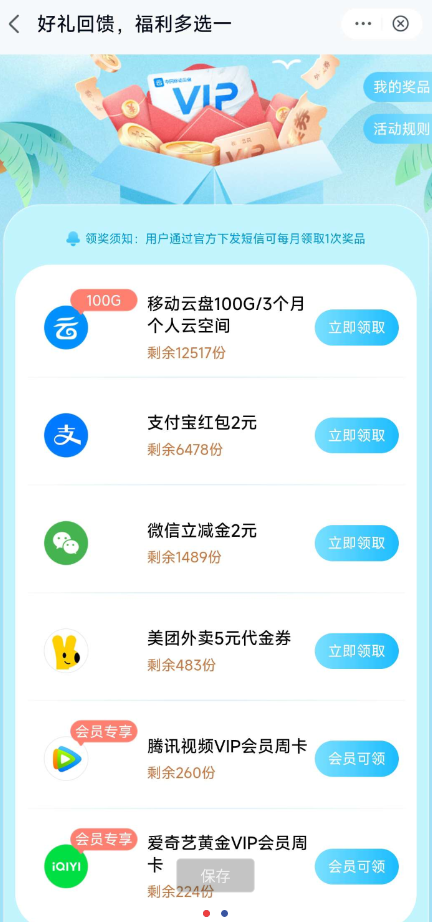 中国移动云盘领2元微信立减金、2元支付宝红包
