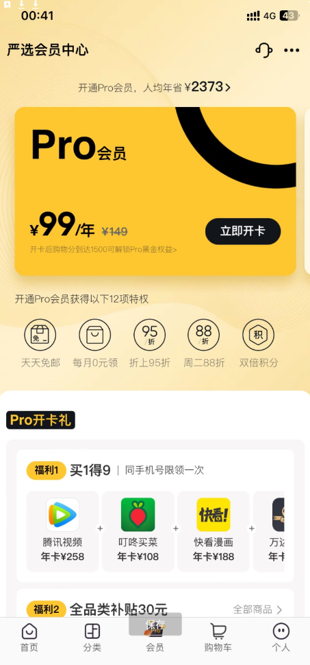 3、开卡后,在网易严选App-我的-会员进去,30元开卡券