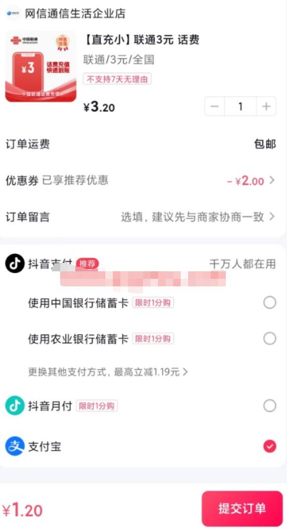 参与方法: 打开抖音APP点击顶部【双11】进入商城点【手机充值】会自动弹出5元无门槛立减,