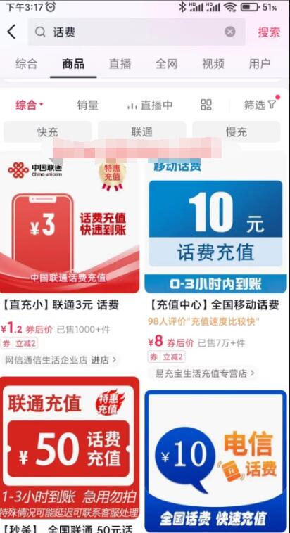 返回抖音APP首页右上角搜索【话费】找到自己运营商10元,小编是联通亲测成功。