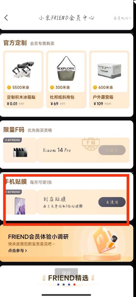 小米商场FRIEND会员卡免费领取,登录就是年卡