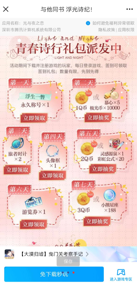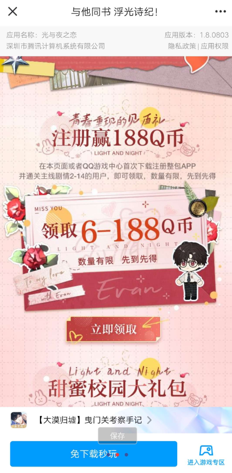 首页 > 活动线报 > 光与夜之恋新用户6Q币