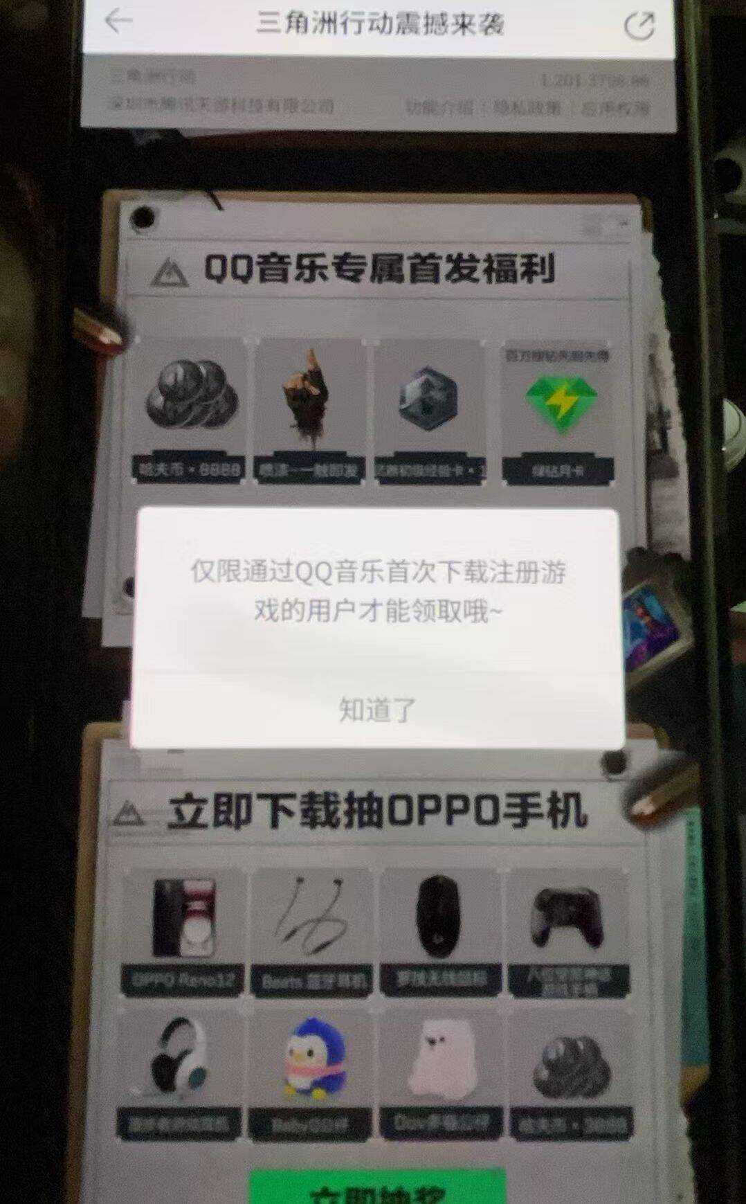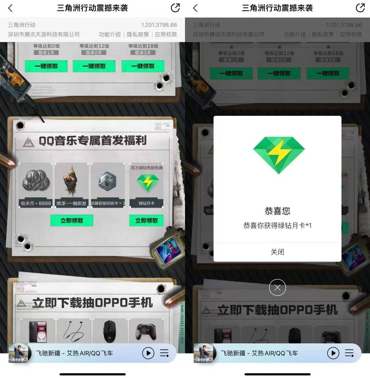 【三角洲行动新用户领绿钻月卡】打开地址跳转到QQ音乐APP->下载登陆游戏->设置昵称->返回页面领绿钻月卡