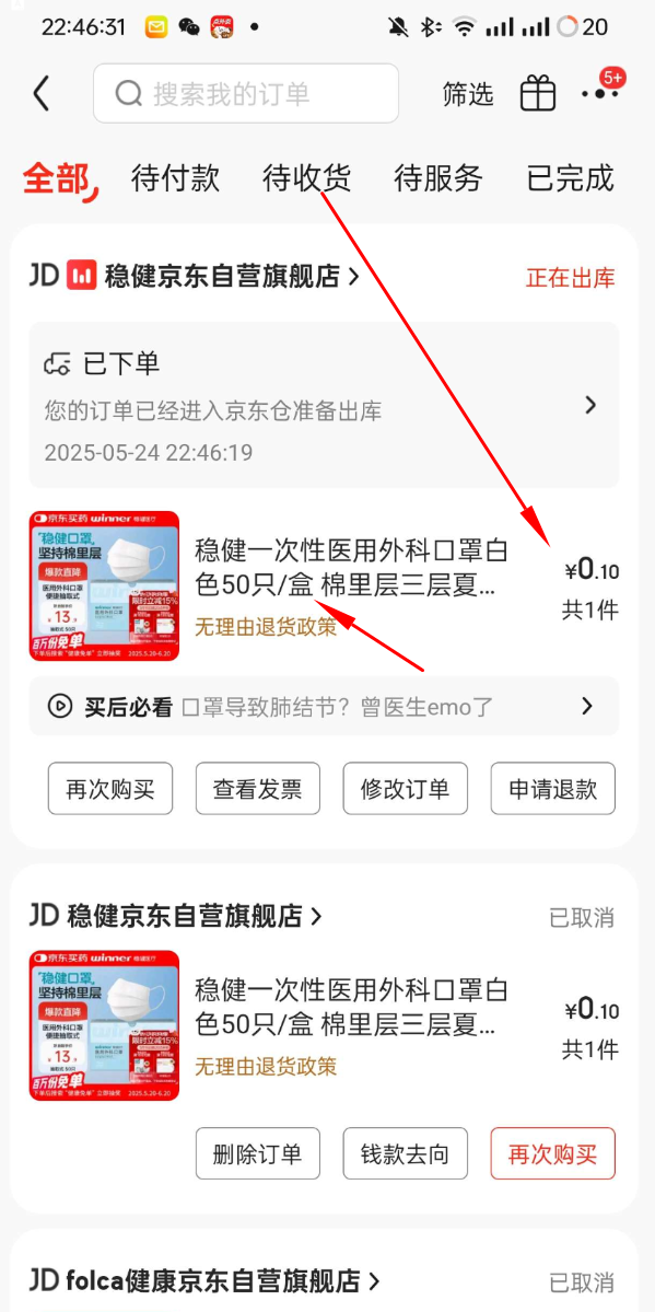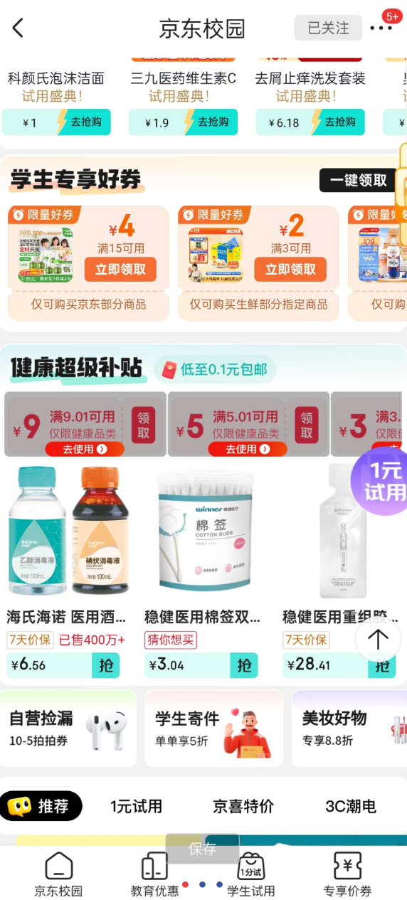 京东学生0元买50个n95口罩 牙线 创口贴等