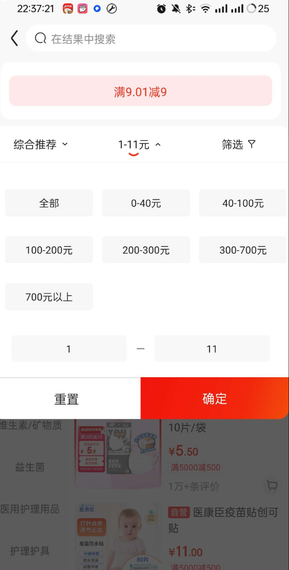 然后9元券那里点去使用筛选一下1~11的价格区间看第2张图