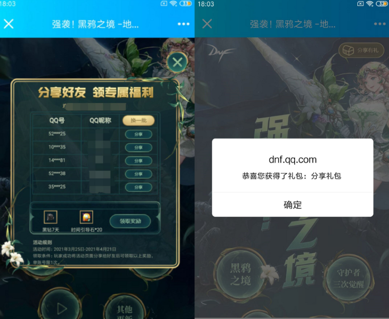 2、活动4在线领30分钟领15天->活动5下拉页面赠送好友3天黑钻->每个活动下拉还有其它方式领黑钻