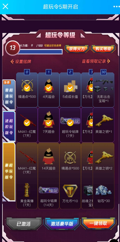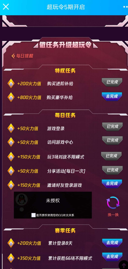 不下载CF手游也没关系,每天可以访问游戏中心,和分享一次就可以升一级拿4天SVIP