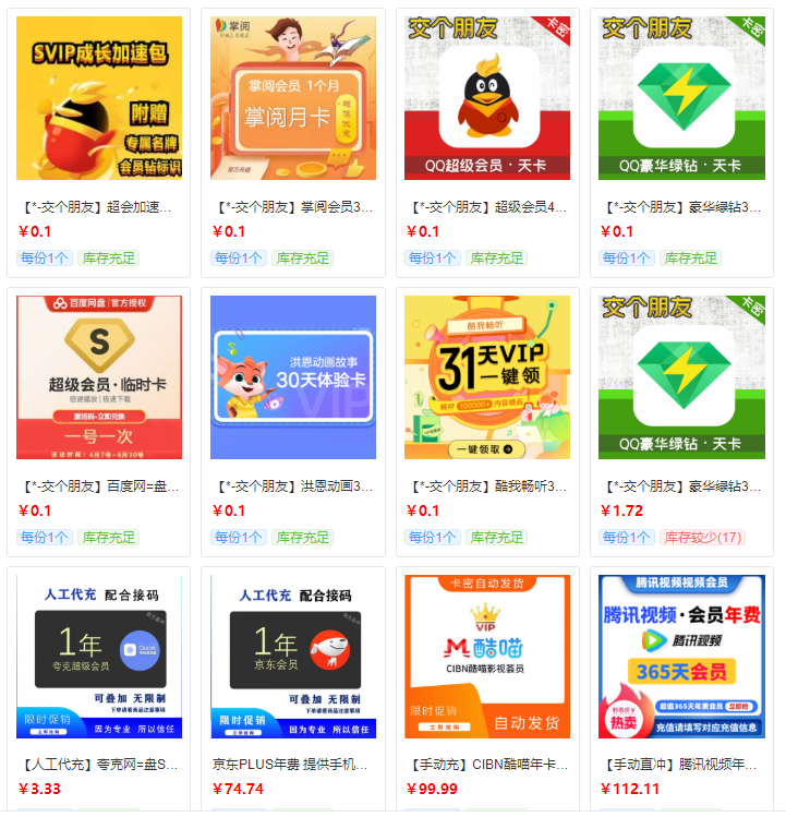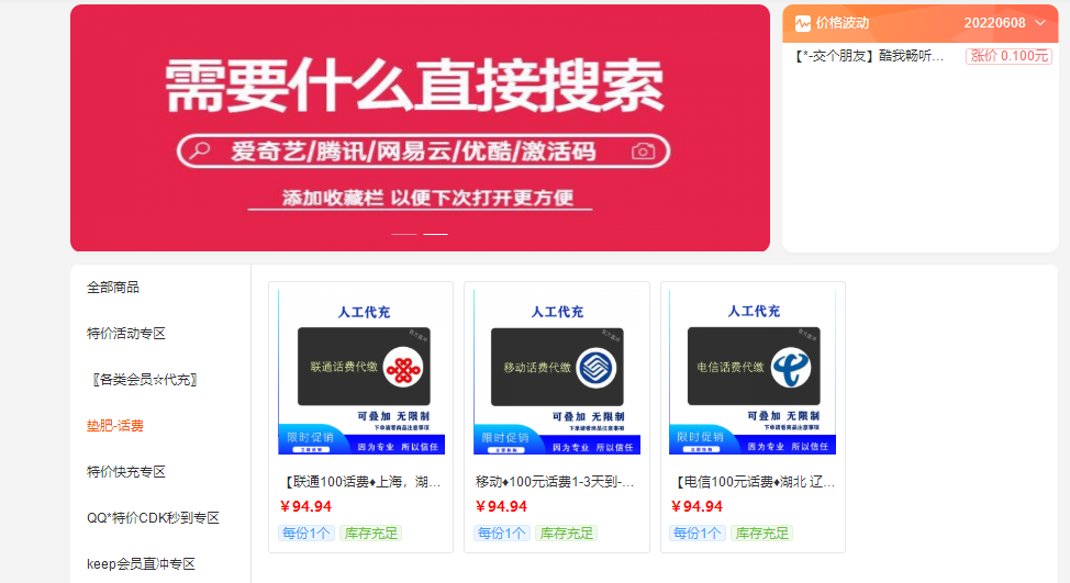 一毛钱亏本卖各种会员话费