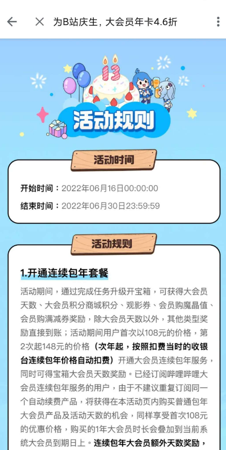 【参与方式】打开哔哩哔哩,点击我的大会员4.6折,1f进去后点击蛋糕按钮即可