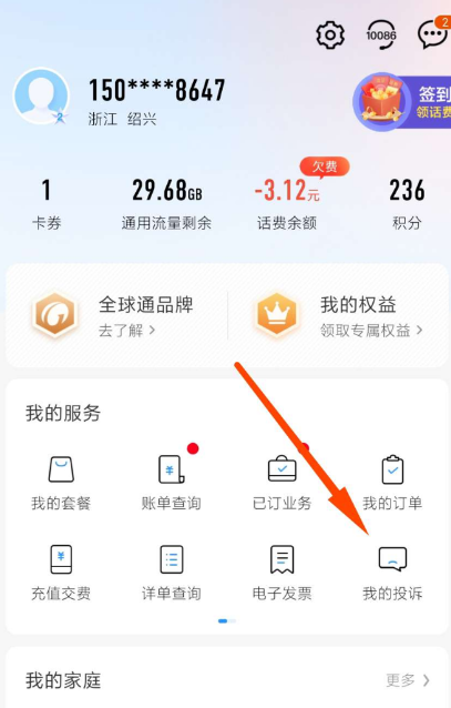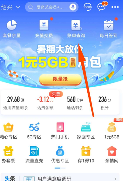 我们打开中间移动app  账单查询