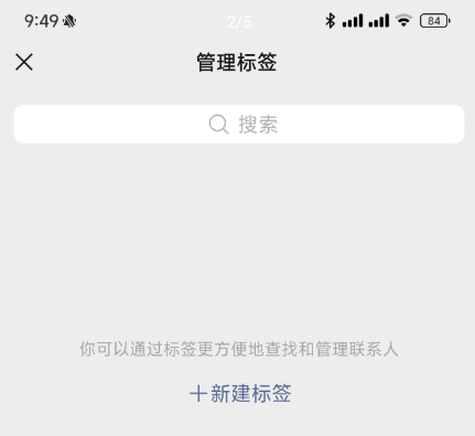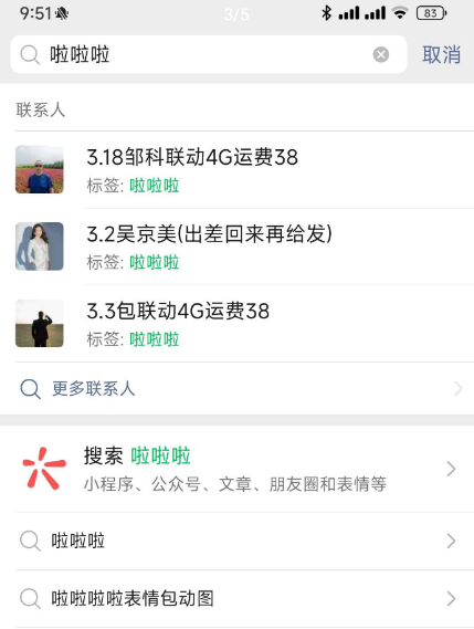 2.在通讯录首页上方的搜索框刚才新建的标签,点击下方的更多联系人。