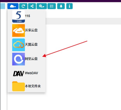 可以看到,支持的云盘厂商还是挺多的,其他的可根据自己来进行挂载,本篇教程是阿里云盘的,所以我们选择阿里云盘。