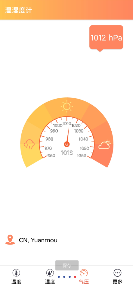 * 气压计:实时气压值及晴雨表