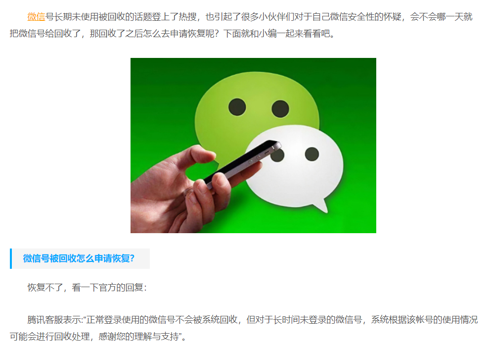 微信号被回收怎么申请恢复?微信号被回收怎么找回来?