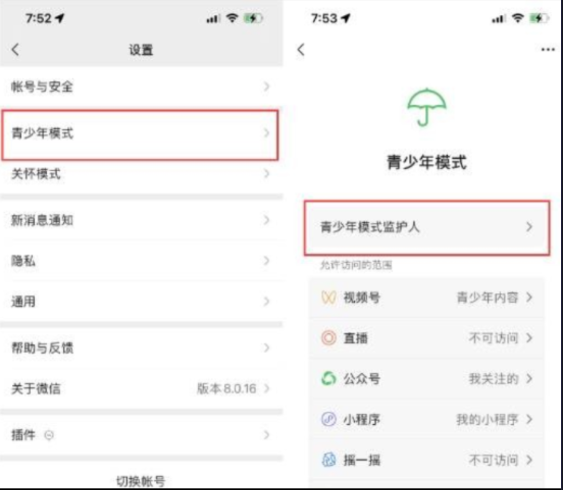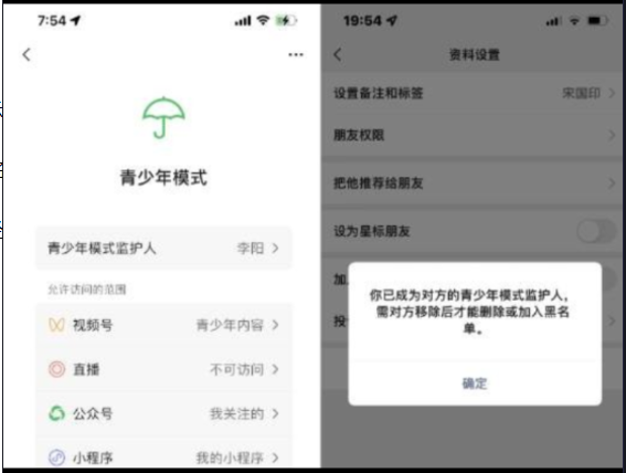 4.在她微信青年模式哪里会显示你微信昵称表示成功了,