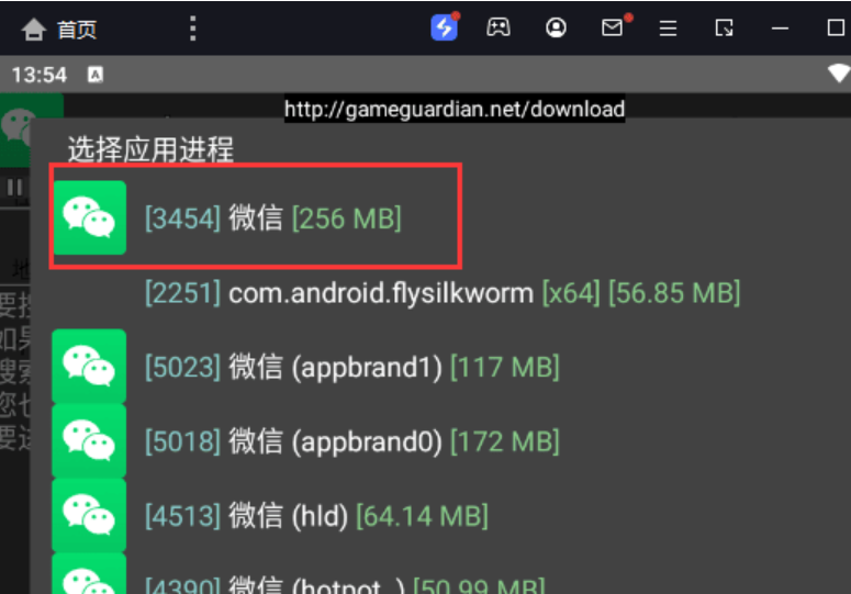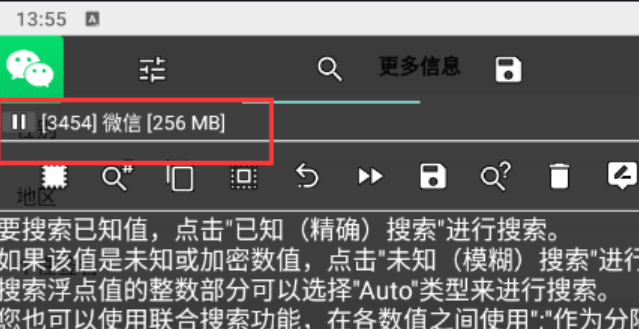 2. 打开GG和微信,在**微信-更多信息**这里点GG图标附加微信主进程,内存占用最大的那个就是
