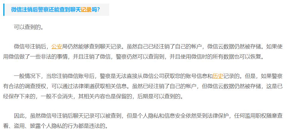 微信注销后警察还能查到聊天记录吗?微信注销后聊天记录会消失吗?