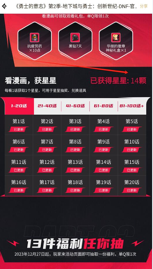 漫画不用看,打开返回就可以了,每点一个就有一颗星星,20颗星星就能换15天黑钻,