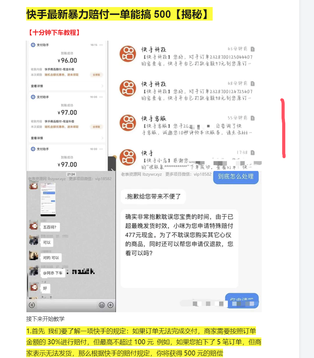 快手最新暴力赔付一单能搞500【揭秘】