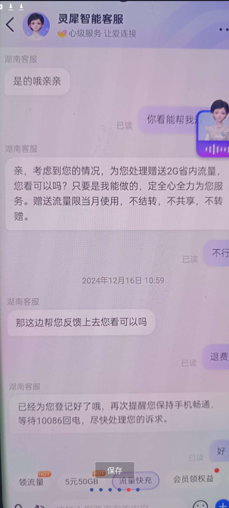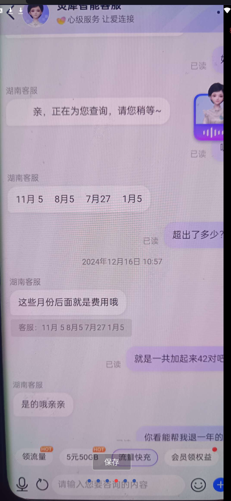 步骤-3没有自动查询就转人工,查询完了有流量超出扣费的话 回复【退费】就会到账的哦