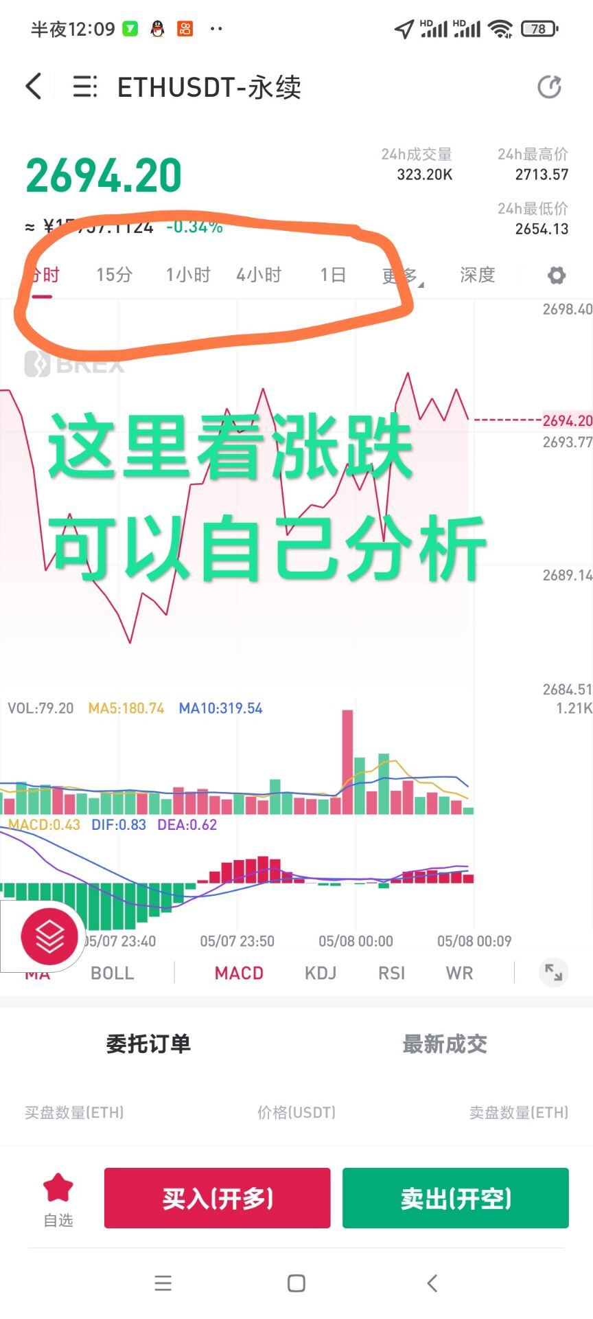 第五步:点击最下方的合约 可以选择买涨就是(买入开多)或者买跌(卖出开空) 只要你猜对跌涨就赚钱了!