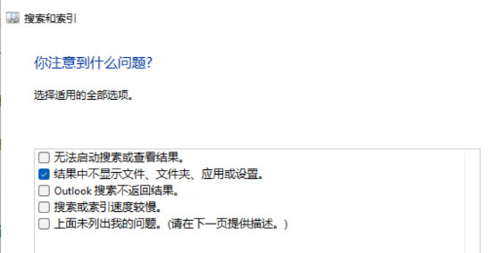 6、你注意到什么问题?勾选【结果中不显示文件、文件夹、应用或设置】;