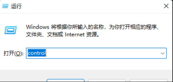 2、运行窗口,输入【control】命令,按确定或回车,可以打开控制面板;