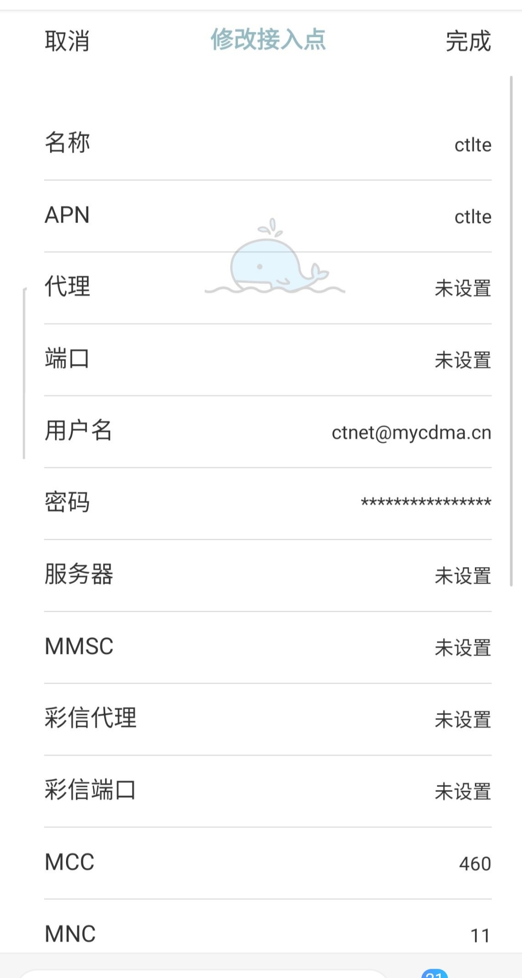 首先进入apn添加一个新的apn,然后把名称和apn都设置成ctlte,用户名设置成:ctnet@mycdma.cn