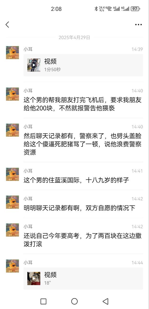 男的帮男的打飞机 要200元 不给报警!真离谱!