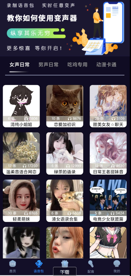 【版本说明】:一款安卓手机模拟变声软件,支持微信Qq等多种社交平台,内置了一个强大的音频合成器,能模拟出各种人群的声线。(已解锁Vip)