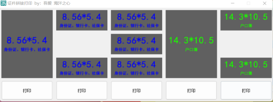 1竖排:用于打印社保卡、银行卡等单页的实现1:1打印