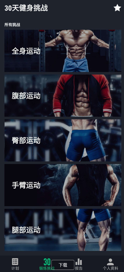 【资源介绍】:30天健身挑战你的私人健身APP,海量健身课程,无论你的目标是减脂、增肌还是塑形,根据你的健身基础和日程,定制专属训练和饮食计划,让身材更有型,已去除广告。