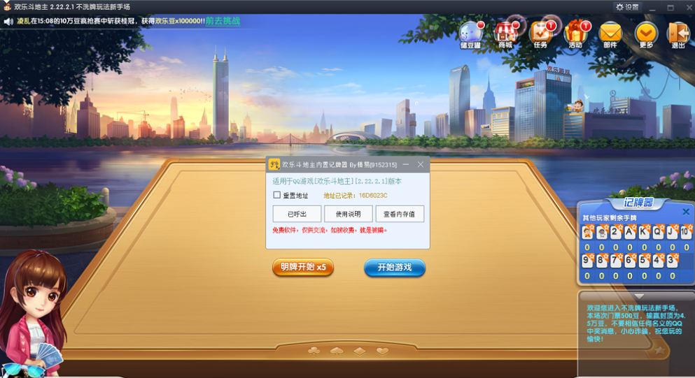欢乐斗地主一键呼出内置记牌器 适用于2.22.2.1版