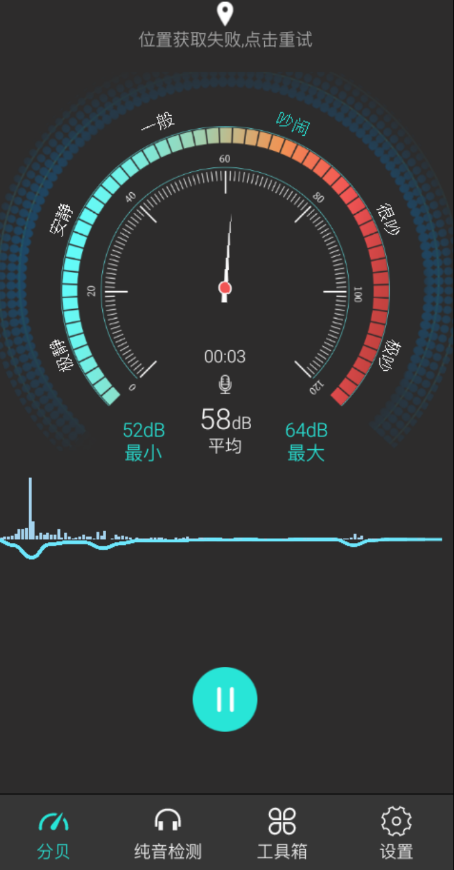 也可以称为测声计、噪声测量仪、噪音检测器,利用手机麦克风对周边的环境和白噪音进行实时检测,显示当前环境的噪音分贝值、定位信息。是一款操作简单,检测噪音的实用小工具。