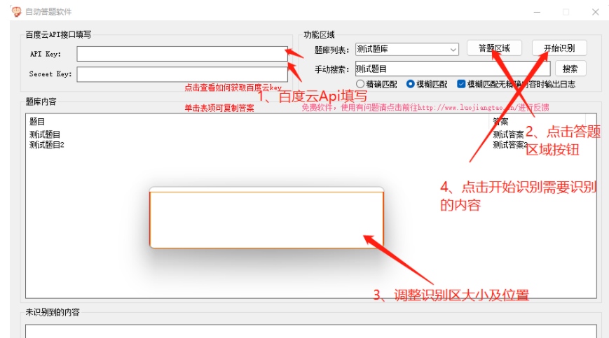 2、先对接百du云API,填写对应的Key,百du文字识别或点击应用内红字前往查看教程